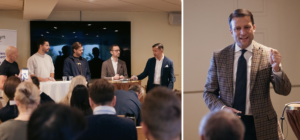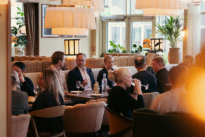 Mötet fortsatte med en paneldiskussion om relationen mellan tandläkare och tandtekniker. Moderator var Per Rehnberg, entreprenör och tandläkare, med bred bakgrund från olika tandvårdskedjor. Panelen bestod av nämnda Marcus Dagnelid, Richard Galambos, vd för Dental Syd, Niklas Virta, vd Aqua Dental samt Maik Peters, vd Aqua Dental Labs. Publiken var med på noterna och det blev ett stimulerande samtal, med tacklingar och passningar fram och tillbaka. Somliga var tandtekniker, andra var tandläkare. Någon satt i styrelse för endera kedja, någon annan satt i styrelse för en annan.